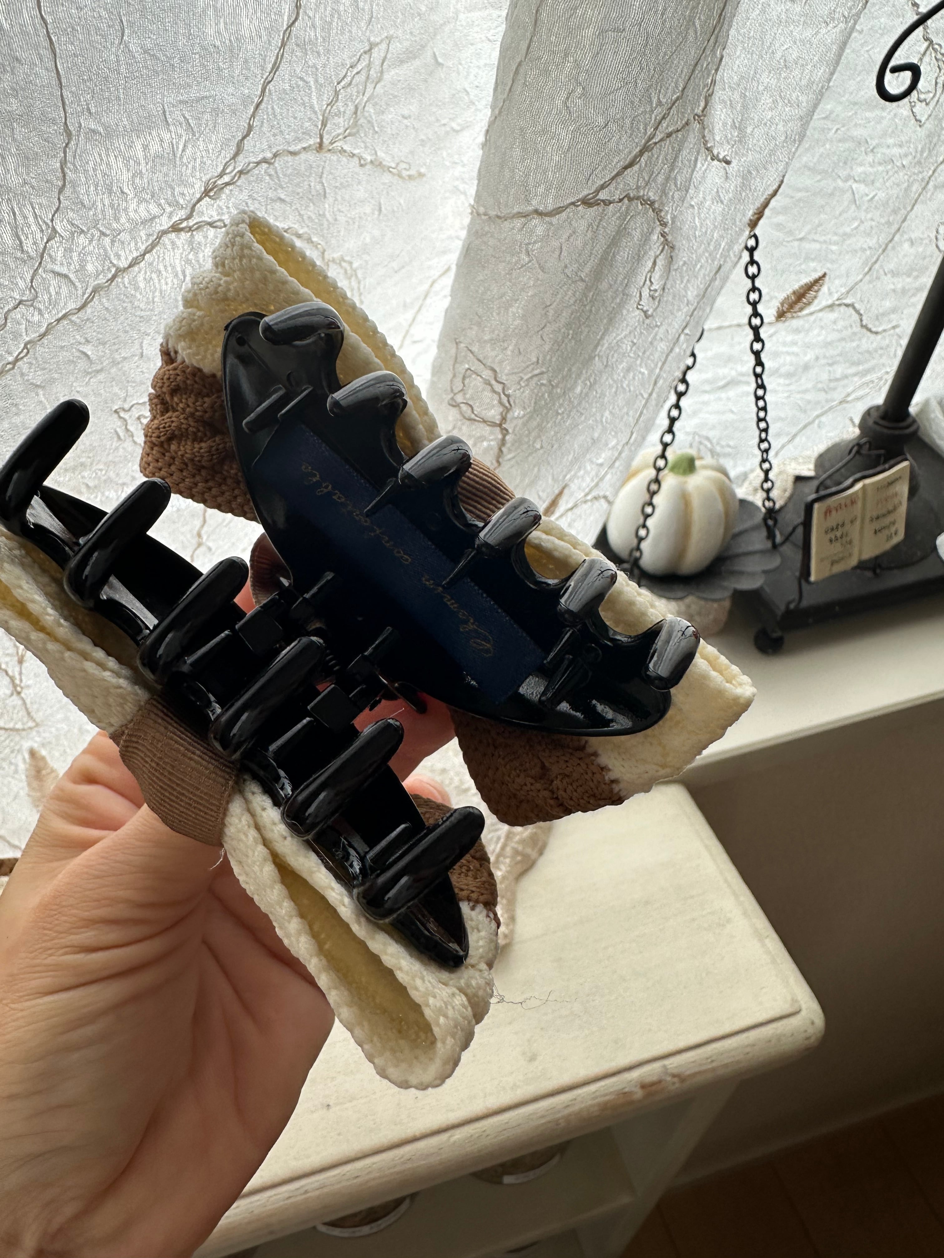 このベージュホワイトニットリボンのバンスクリップで、心地よく暖かな秋冬のスタイルを演出しましょう✨