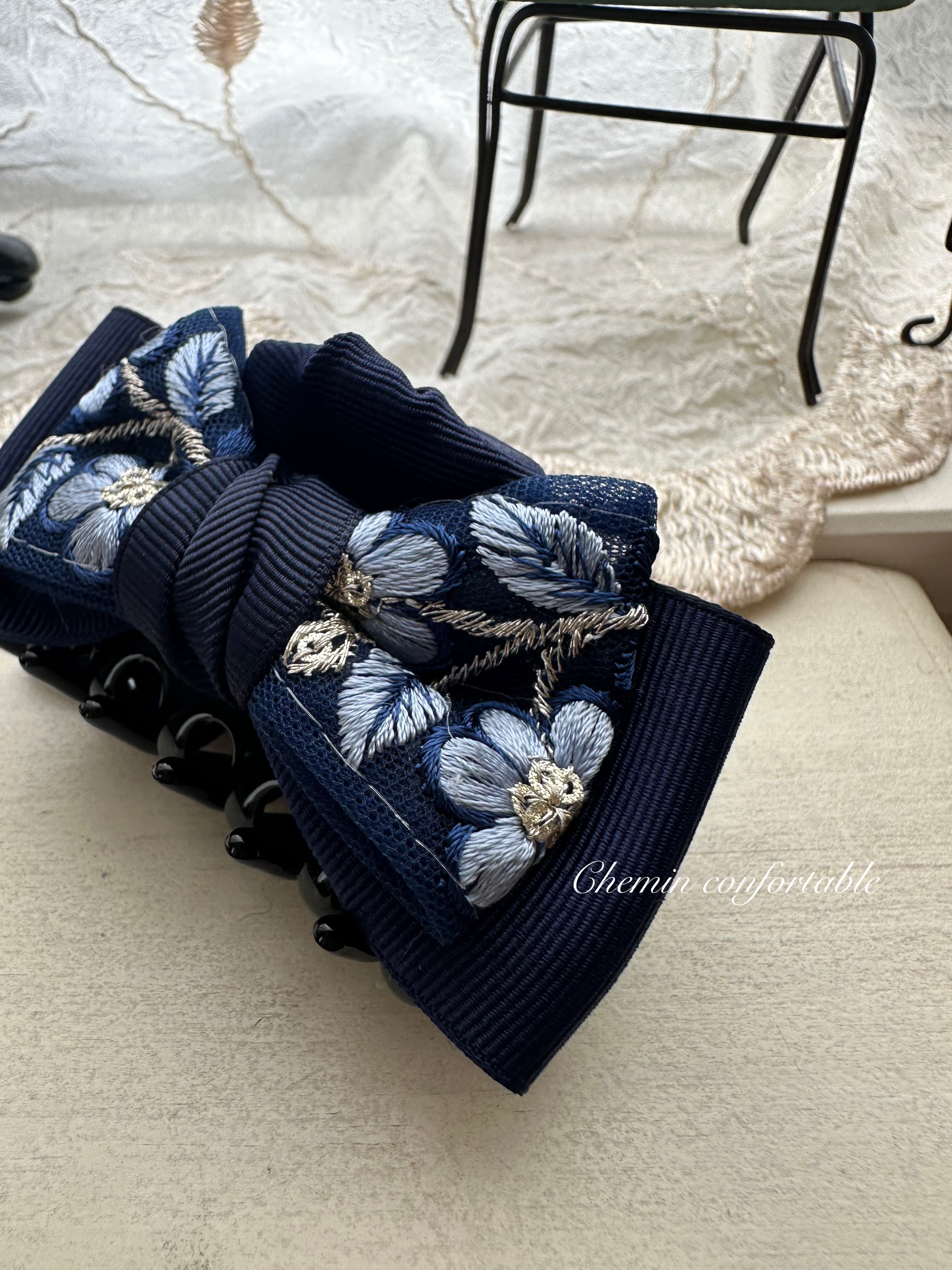 ネイビー花柄バンスクリップ ゆったりサイズ✨