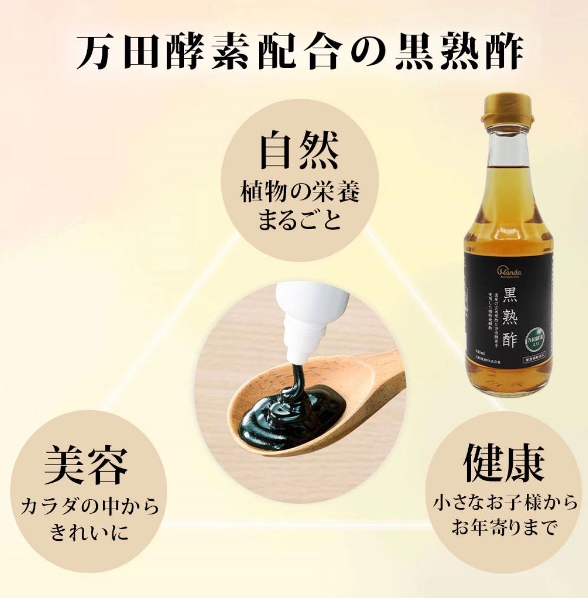 万田酵素の黒熟酢は、厳選された発酵素材から作られた、