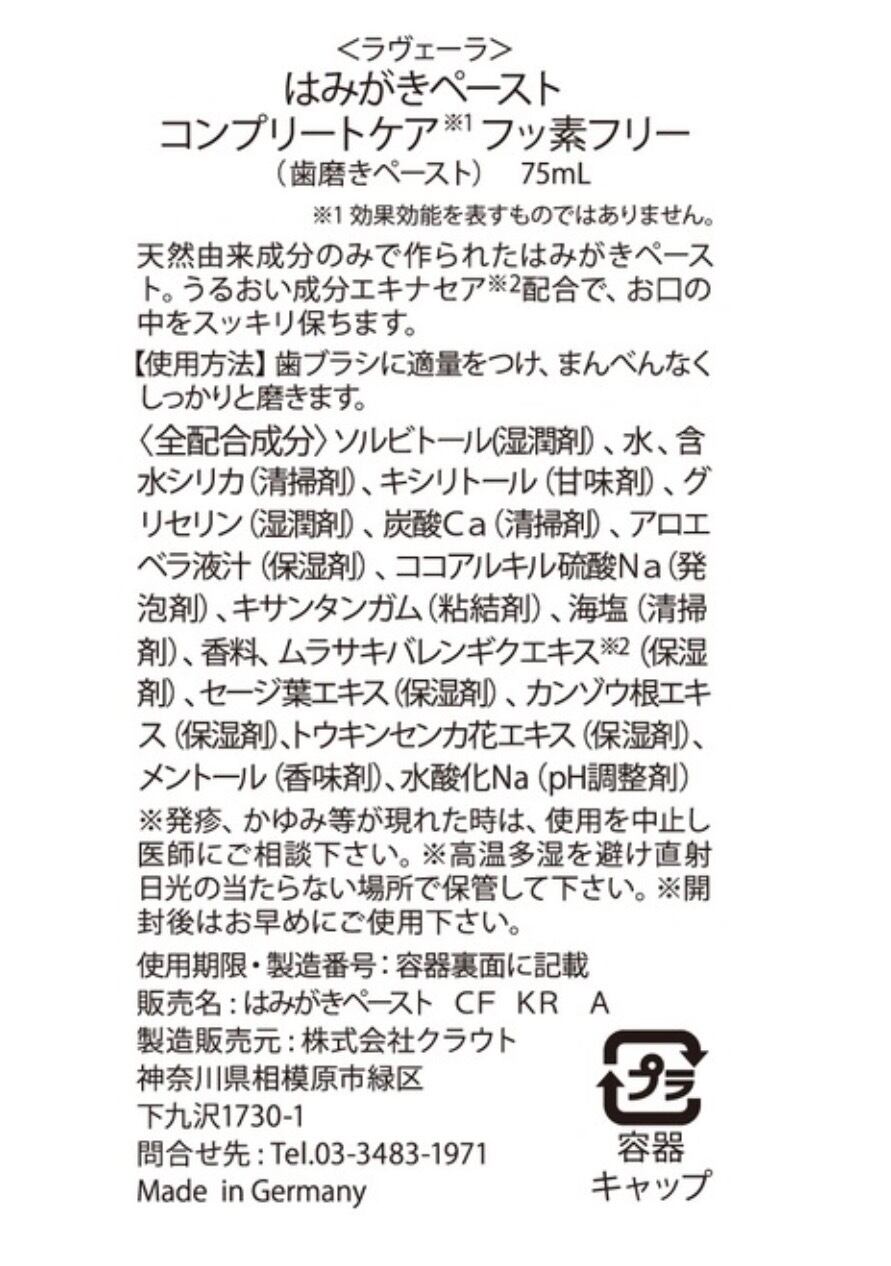 ラヴェーラ歯磨きペースト フッ素フリー 75mlの