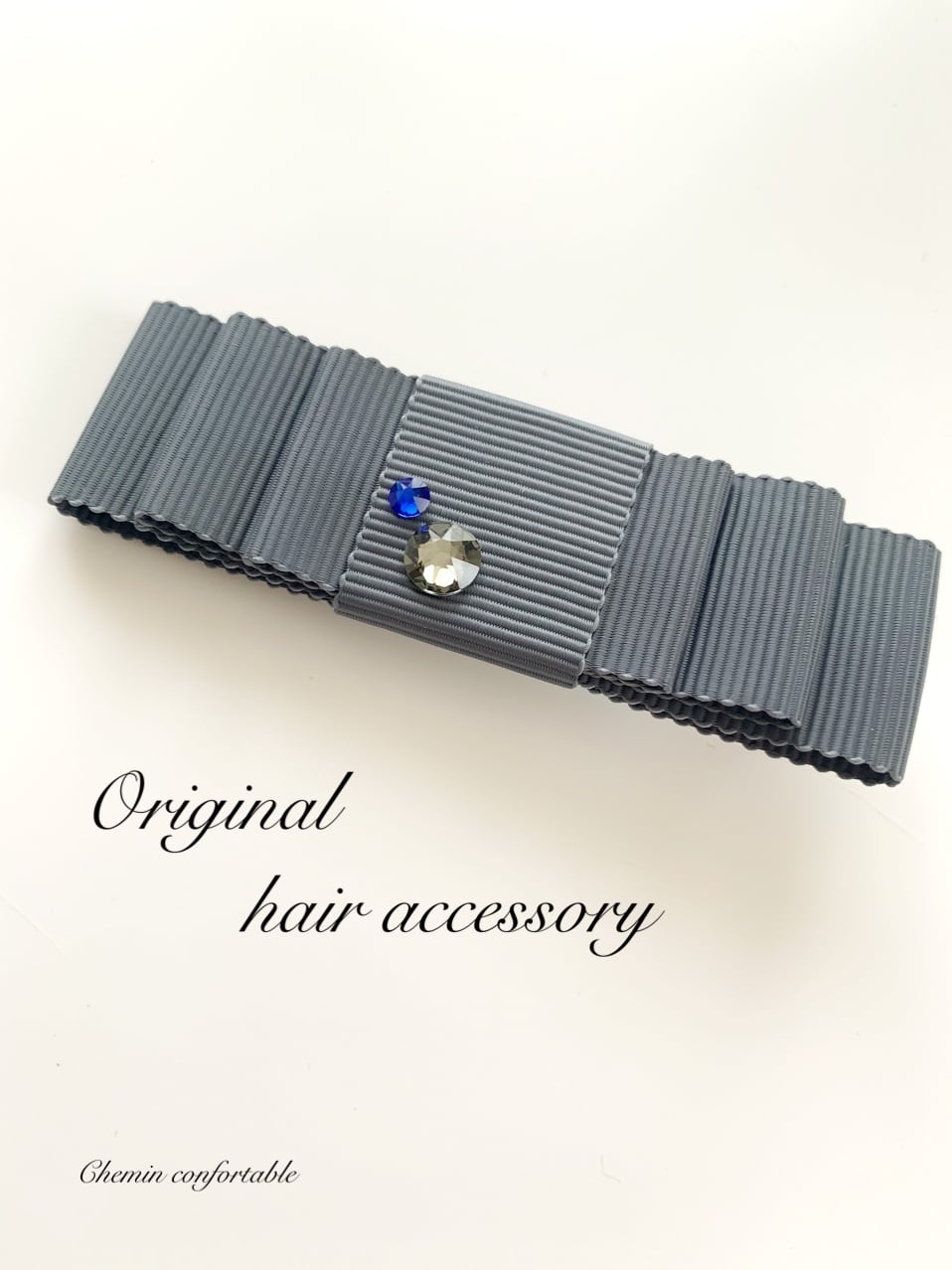 ヘアクリップ グレー×ストーン